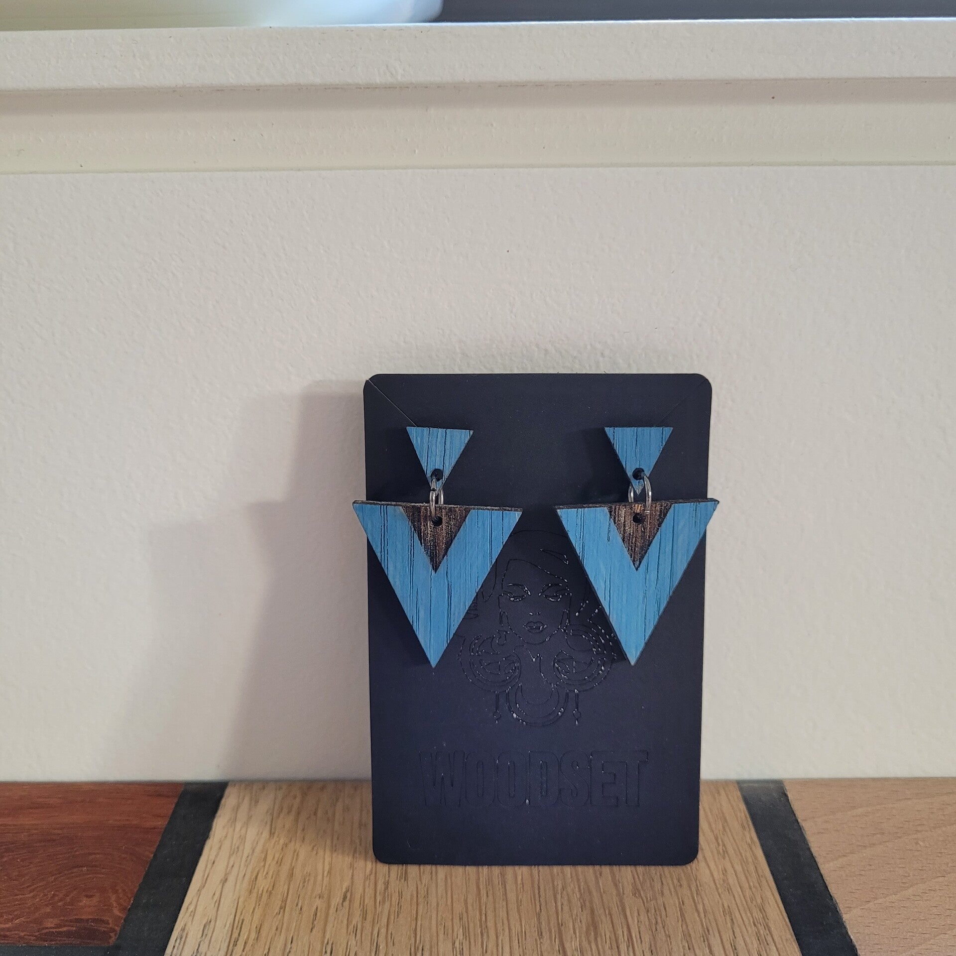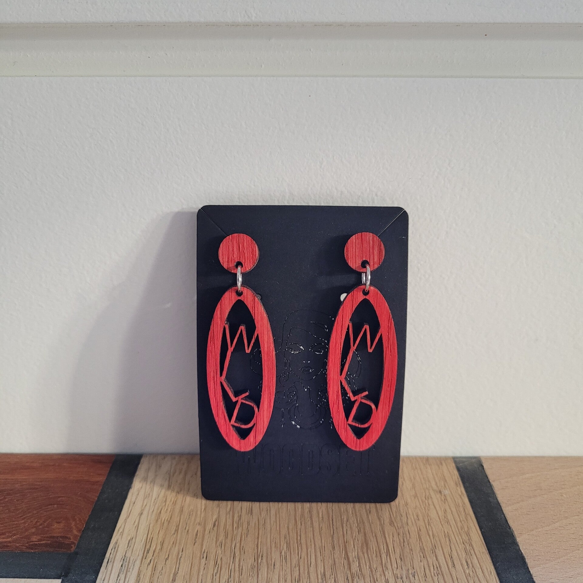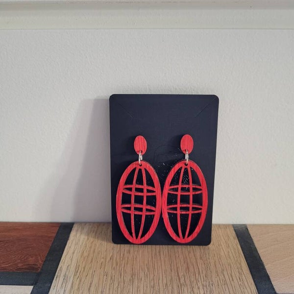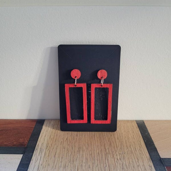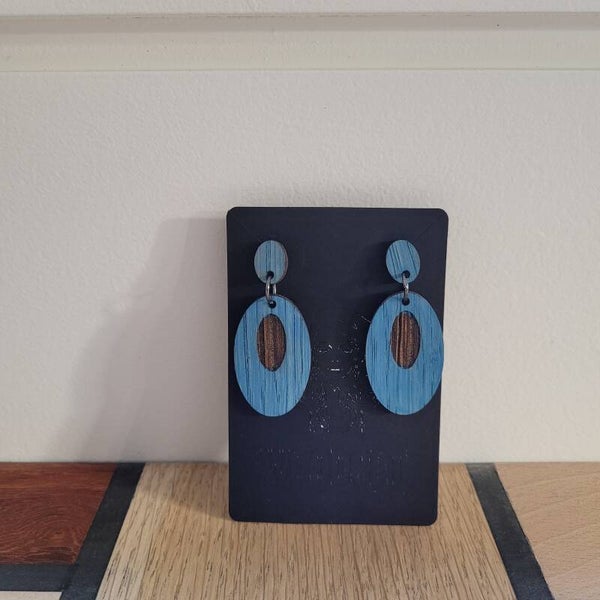 Massief eikenhouten oorbellen. afgewerkt met verschillende kleuren.